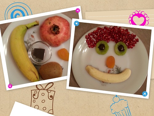 Meyveleri soyun, çikolatayı benmari usulü eritin ve tabağa resimdeki gibi yerleştirin.